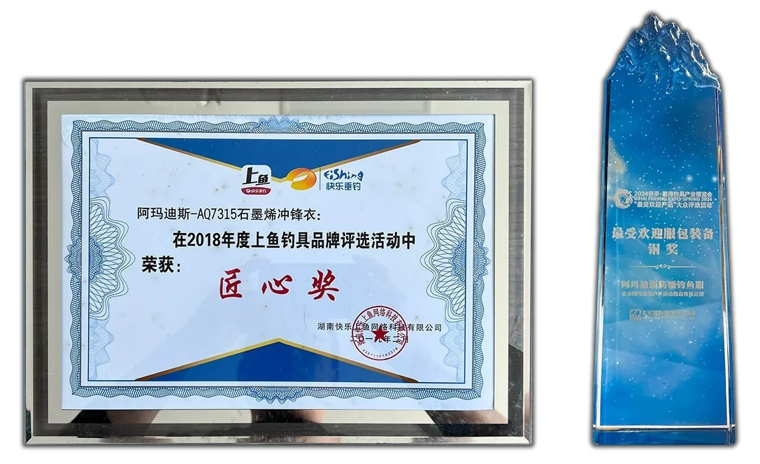 凭借超高品质,阿玛迪斯户外钓鱼防晒服荣获“最火渔具产品”奖,同时,在2024年春季碧海钓具产业博览会“最受欢迎产品”大众评选活动中,阿玛迪斯防晒钓鱼服斩获“最受欢迎服包装备铜奖”,深受消费者青睐。此外,在2018年度上鱼钓具品牌评选活动中,阿玛迪斯荣获“匠心奖”,并在澳仕玛中国钓具产业高峰论坛上,荣膺“中国钓具百强品牌”称号,品牌实力、市场影响力以及行业贡献得到了高度认可,跻身行业领先品牌行列。